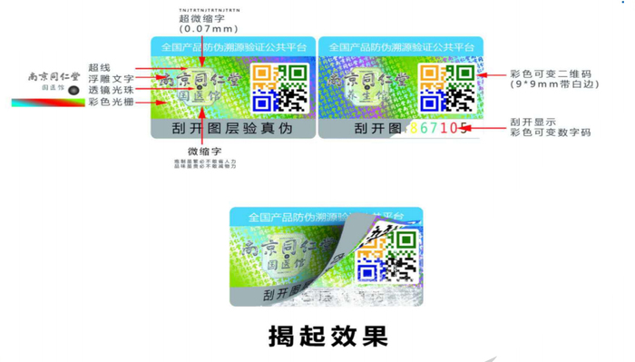 为了维护自己品牌的有力手法。防伪标签的运用伴随着冒充伪劣产品的出现,所涉及运用规模广,我们生产的防伪标签在各行各业中都被广泛运用。